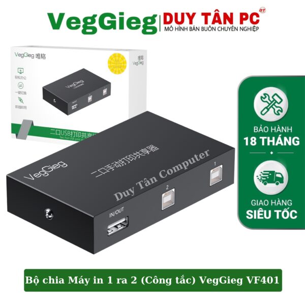 Bộ chia máy in 1 ra 2 V-F401 (Bấm nút) VEGGIEG Two-way (2 In 1 Out) USB2.0 Bidirectional Manual