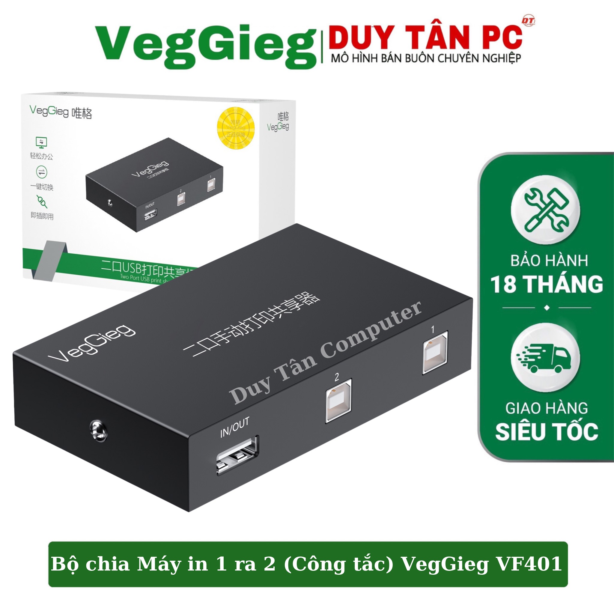 Đặt mua Bộ chia máy in 1 ra 2 V-F401 (Bấm nút) VEGGIEG Two-way (2 In 1 Out) USB2.0 Bidirectional Manual